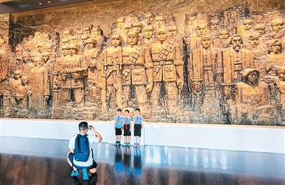 寒假時代,很多家長帶著孩子前去中國國民抗日戰鬥留念館觀賞、研學,一些孩子還特意系上紅圍巾。  本報記者 尹 婕攝